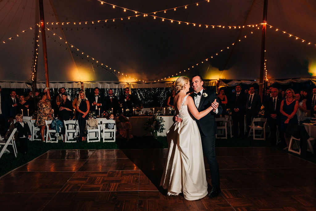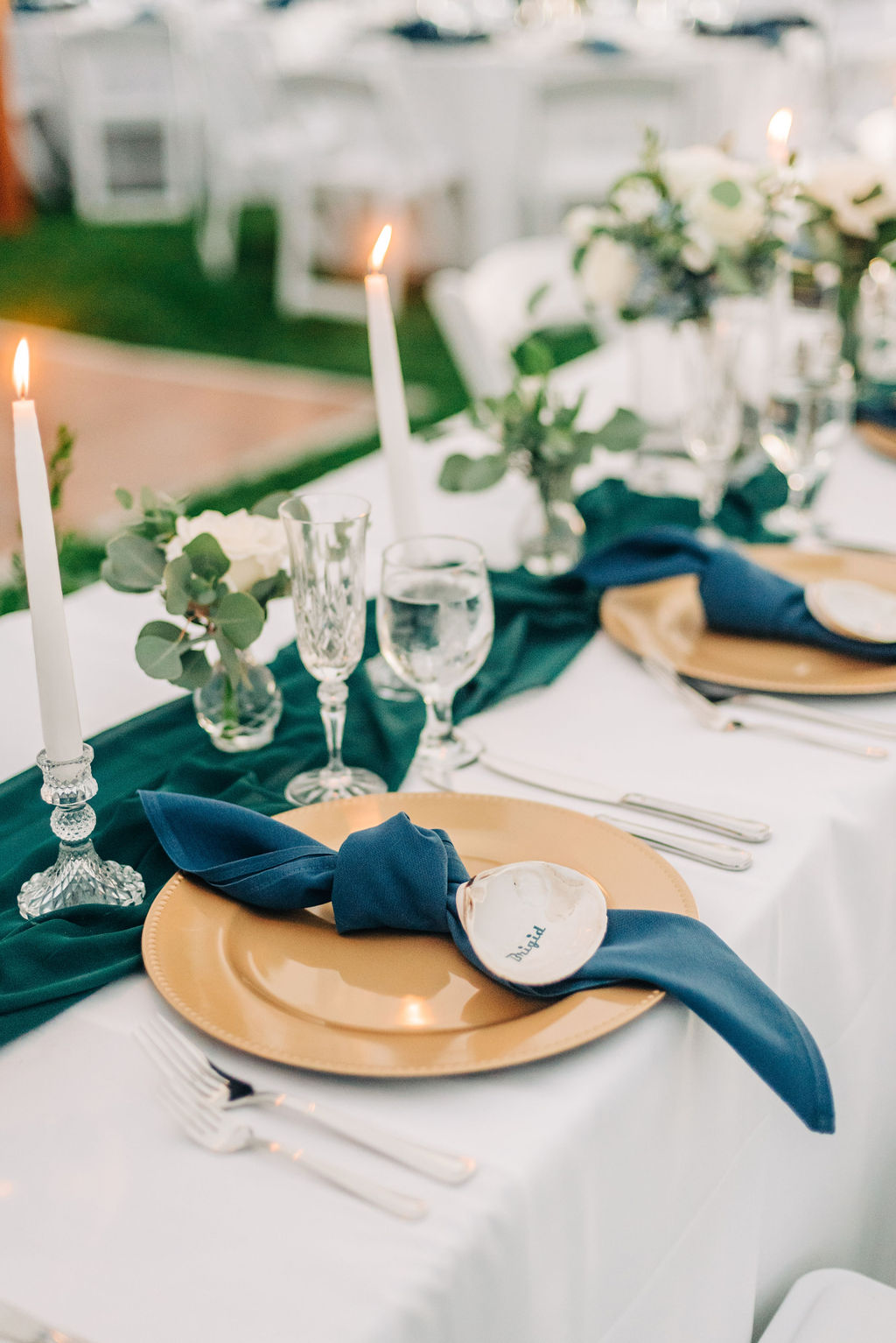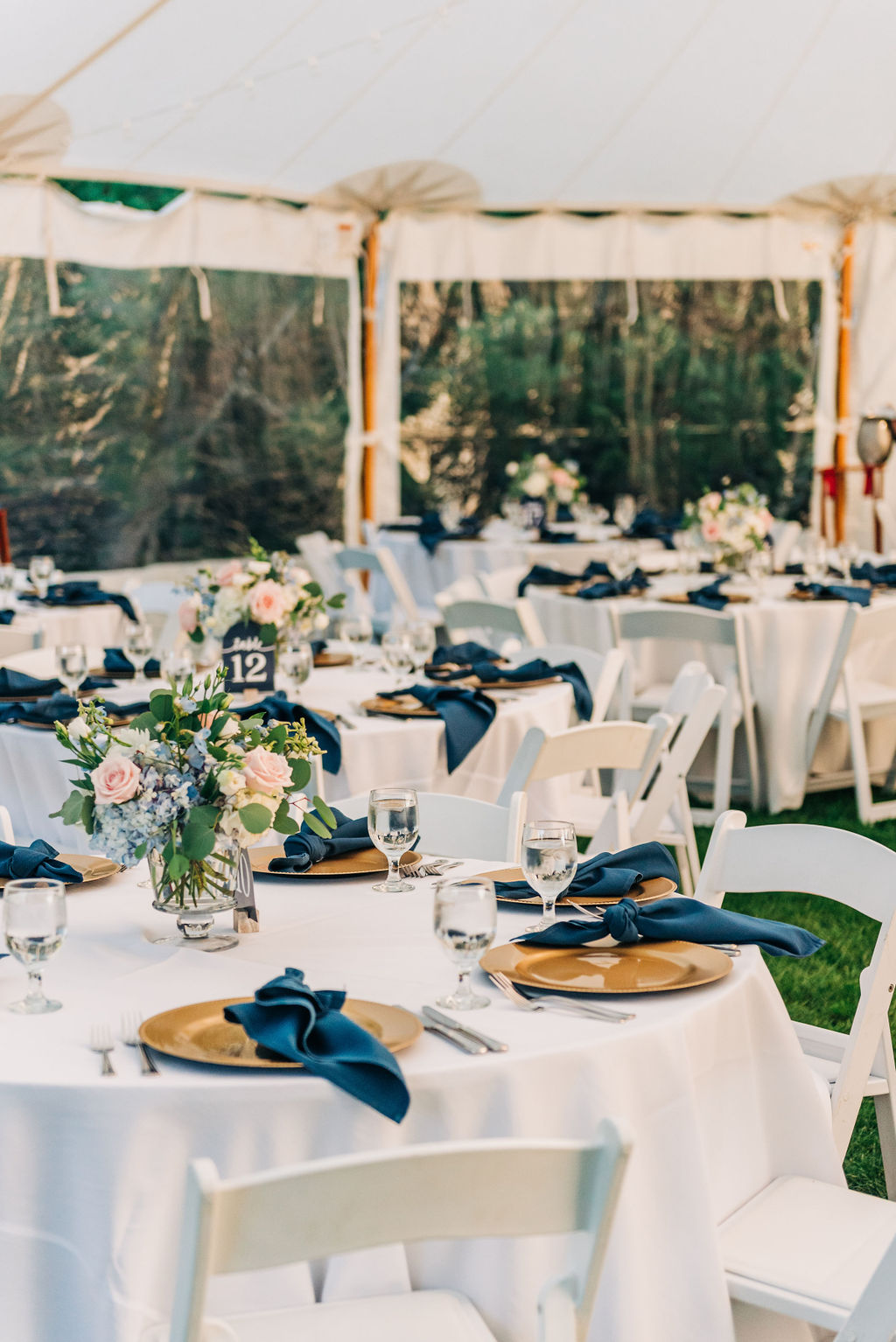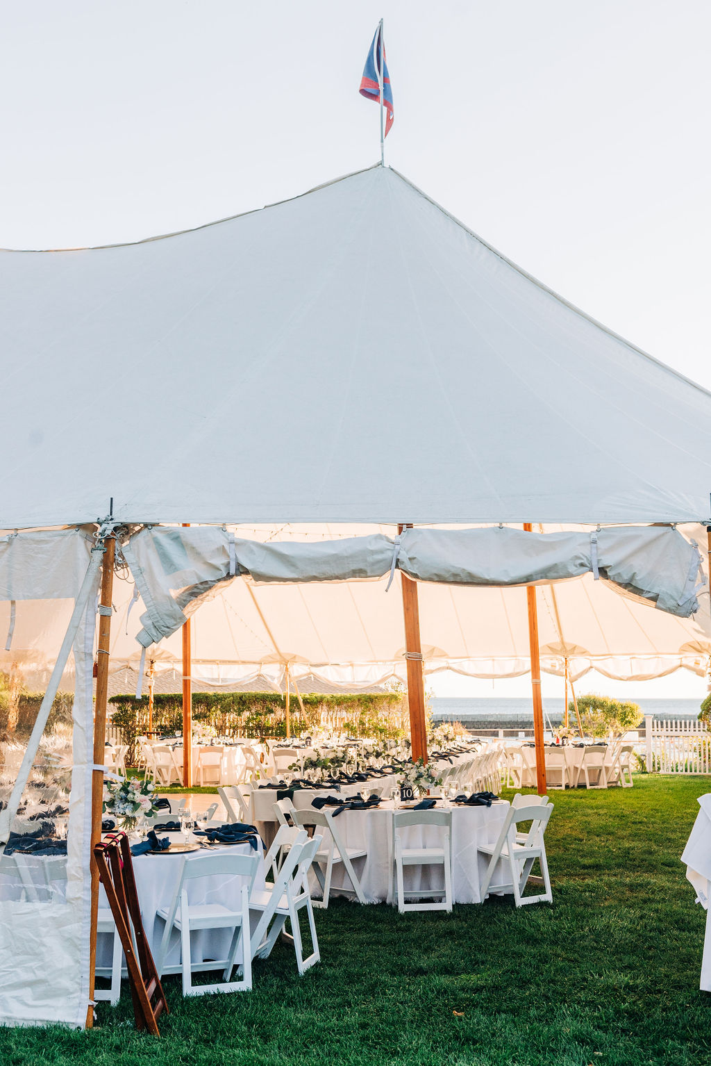 The backdrop was the inspiration for this summer celebration. With the taste of salt water in the air, Michelle and Scott selected ocean tones and the perfect nautical touches to elevate this elegant tented reception.